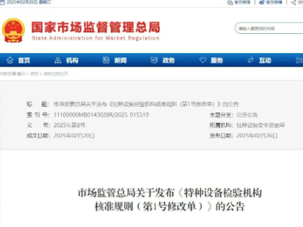 市场监管总局关于发布《特种设备检验机构核准规则(第1号修改单)》的公告