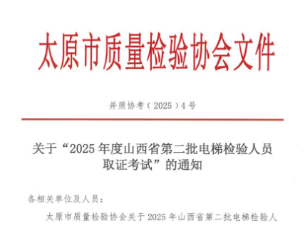 关于“2025年度山西省第二批电梯检验人员取证考试”的通知